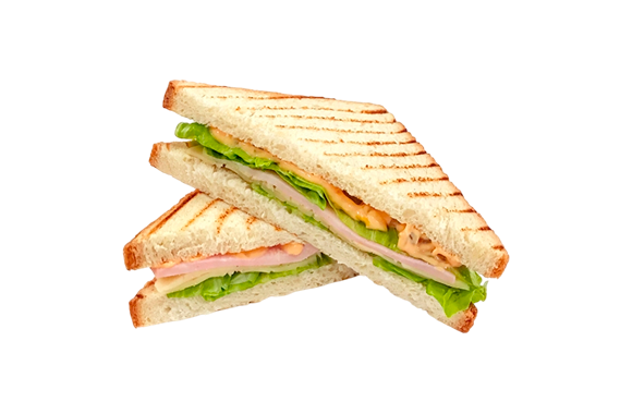 Состав: хлеб сэндвичный, соус майонезный, ветчина, салат айсберг, сыр порционный.
